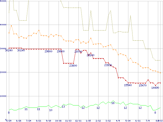 PC2700(DDR333) DDR SDRAM DIMM ECC対応 Registeredタイプの最安値推移