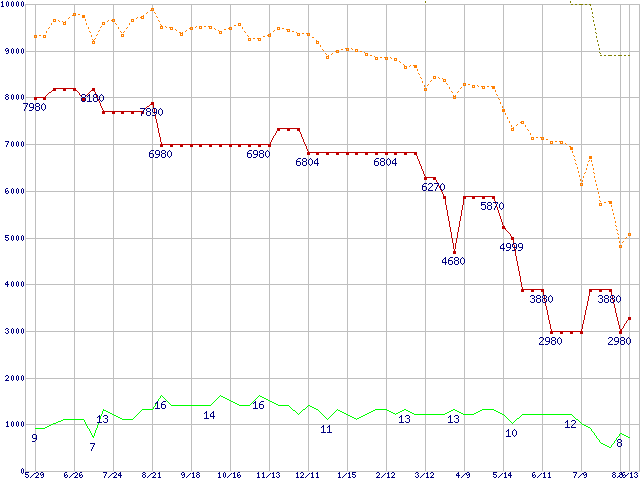 メモリ主要製品の最安値推移