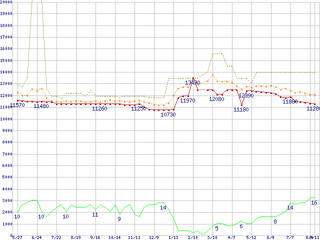 | WD360GD (36.7GB)の価格推移 | | | (2004年5月27日~2005年8月11日) |