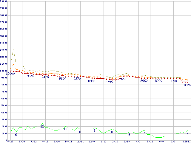 | WD1600JB (160GB)の価格推移 | | | (2004年5月27日~2005年8月11日) |