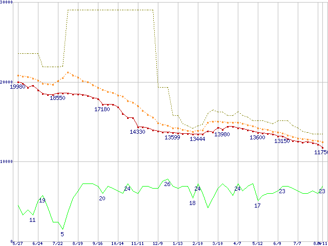 | HDS722525VLSA80 (250GB,8MB)の価格推移 | | | (2004年5月27日~2005年8月11日) |