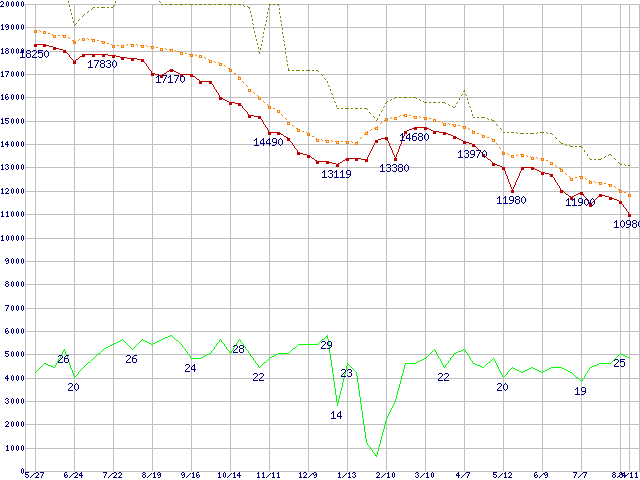 | HDS722525VLAT80 (250GB,8MB)の価格推移 | | | (2004年5月27日~2005年8月11日) |