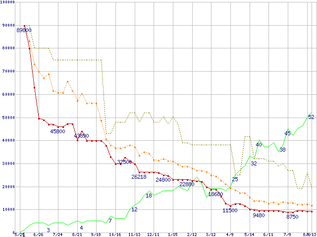 | PC2-4200* 1GBの価格推移 | | | (2004年5月29日~2005年8月13日) |