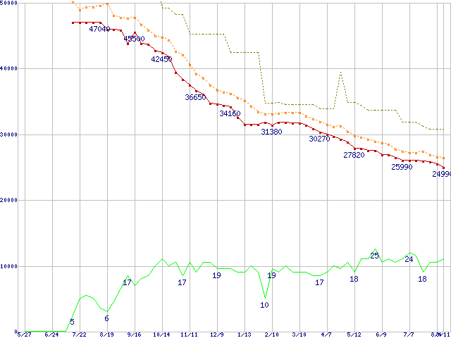 | HDS724040KLAT80 (400GB,8MB)の価格推移 | | | (2004年5月27日~2005年8月11日) |