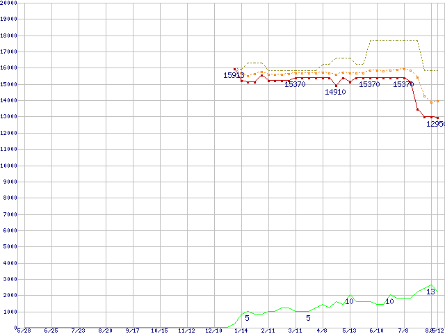 | Celeron M 370 (1.5GHz)の価格推移 | | | (2004年5月28日~2005年8月12日) |