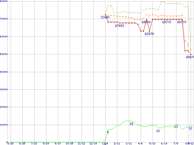 | Pentium M 770 (2.13GHz)の価格推移 | | | (2004年5月28日~2005年8月12日) |