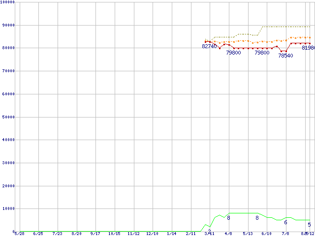 | Xeon 3.4GHz (L2 2MB)の価格推移 | | | (2004年5月28日~2005年8月12日) |