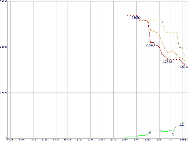 | WD3200JD (320GB)の価格推移 | | | (2004年5月27日~2005年8月11日) |