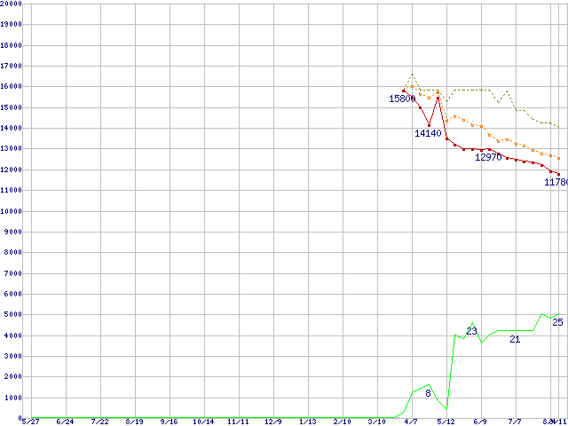| HDT722525DLAT80 (250GB,8MB)の価格推移 | | | (2004年5月27日~2005年8月11日) |