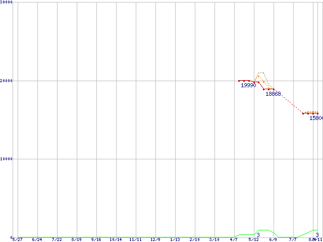 | WD3000JB (300GB)の価格推移 | | | (2004年5月27日~2005年8月11日) |