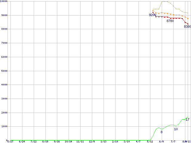| 6L120M0 (120GB,8MB)の価格推移 | | | (2004年5月27日~2005年8月11日) |