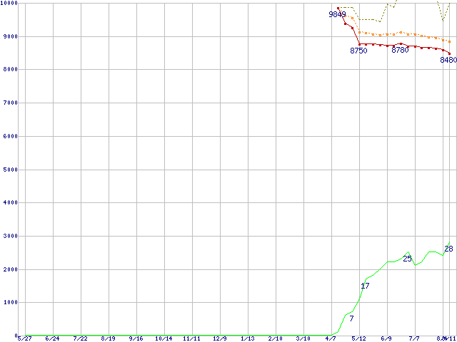 | 6L160P0 (160GB,8MB)の価格推移 | | | (2004年5月27日~2005年8月11日) |