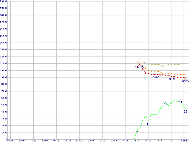 | HDT722516DLA380 (160GB,8MB)の価格推移 | | | (2004年5月27日~2005年8月11日) |