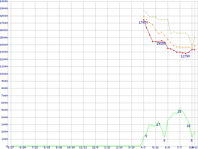 | HDT722525DLA380 (250GB,8MB)の価格推移 | | | (2004年5月27日~2005年8月11日) |
