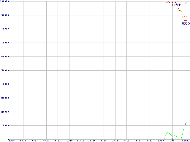 | Athlon 64 X2 4600+ (2.4GHz,L2 512KBx2)の価格推移 | | | (2004年5月28日~2005年8月12日) |