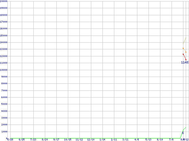 | Sempron 3100+ (1.8GHz,L2 256KB,64bit対応)の価格推移 | | | (2004年5月28日~2005年8月12日) |