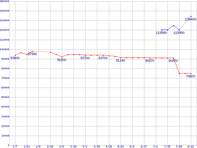 Socket 939 (FSB 1000MHz,L2 1MB)の最安値推移
