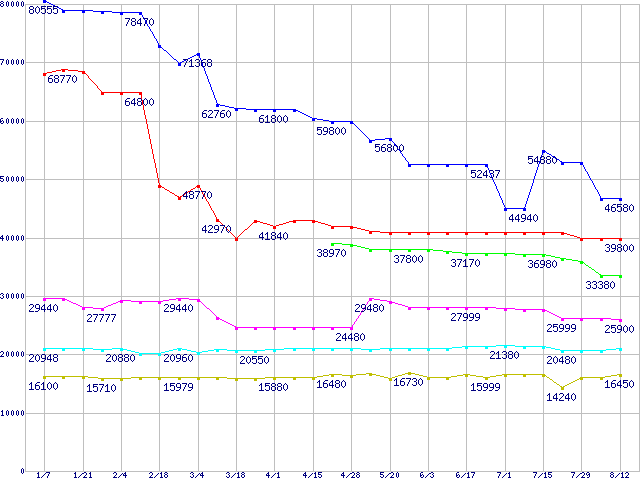 Socket 939 (FSB 1000MHz,L2 1MB)の最安値推移