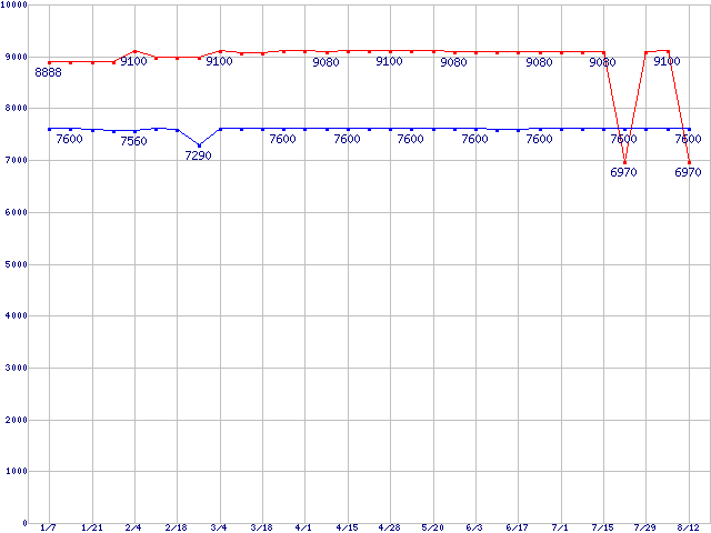 Socket 478 (FSB 400MHz,L2 128KB)の最安値推移