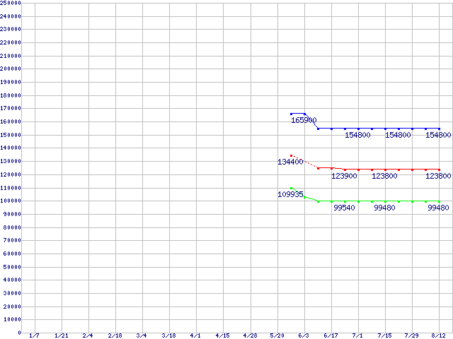 Socket 940 (FSB 1000MHz,L2 1MB)の最安値推移