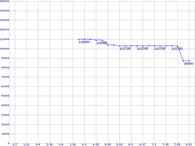 Socket 940 (FSB 1000MHz,L2 1MB)の最安値推移