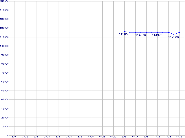 | LGA 775 (FSB 800MHz,L2 1MB×2,Dual Core,Hyper-Threading,EM64T対応)の最安値推移 | | | (2005年1月7日~2005年8月12日) |