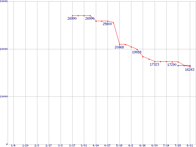WD Raptor (10000rpm,Serial ATA/150,8MB)の最安値推移