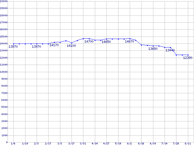 | MaXLine Plus II (7200rpm,8MB,Serial ATA/150)の最安値推移 | | | (2005年1月6日~2005年8月11日) |