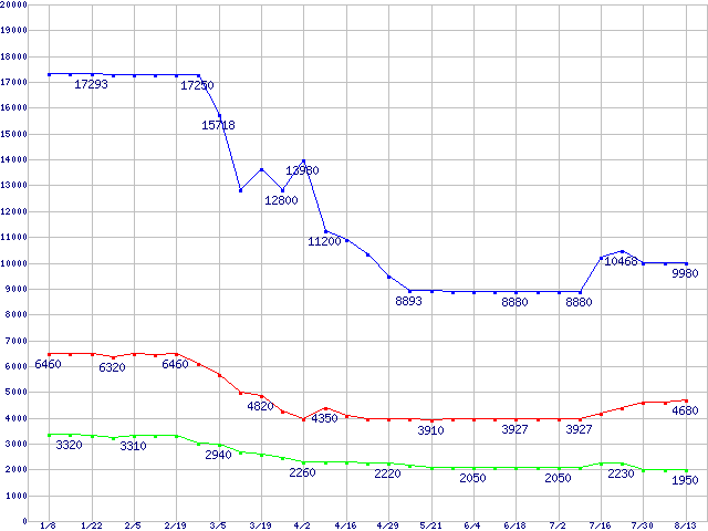 PC2700(DDR333) DDR SDRAM DIMMの最安値推移