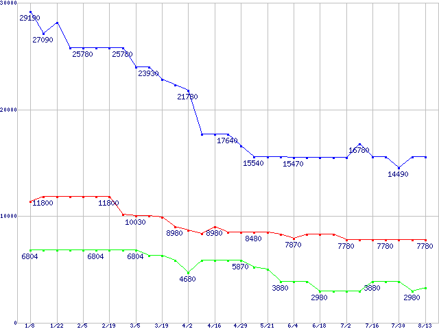 PC2700(DDR333) DDR SDRAM DIMMの最安値推移