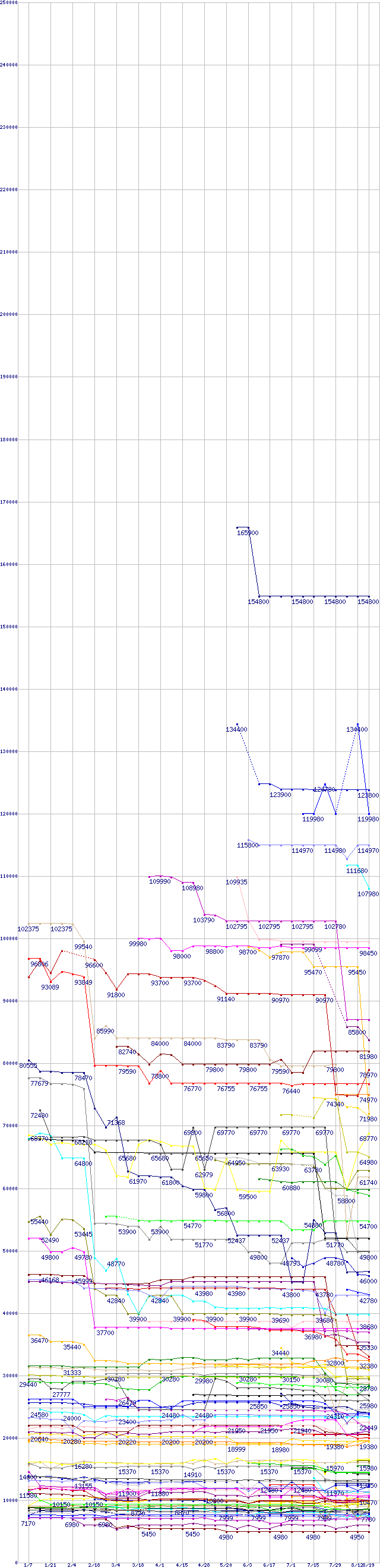 ※製品名をクリックすると個別のグラフを表示します ※点線部は販売店が確認できなかった、または調査データがないことを示します |