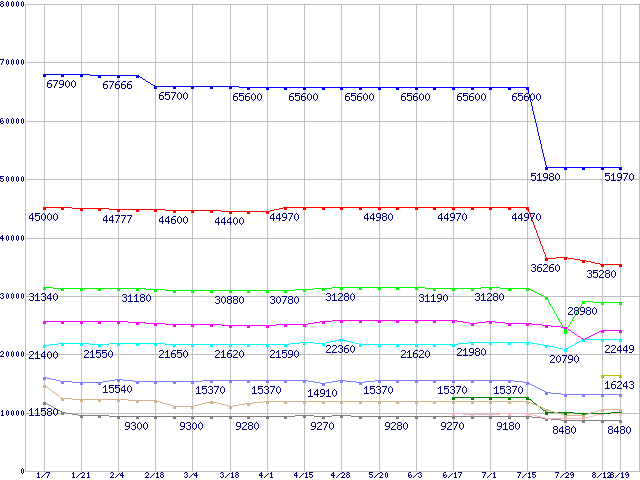 mPGA 479M・FSB 533MHzの最安値推移