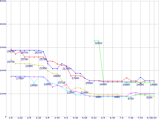 ※点線部は販売店が確認できなかった、または調査データがないことを示します