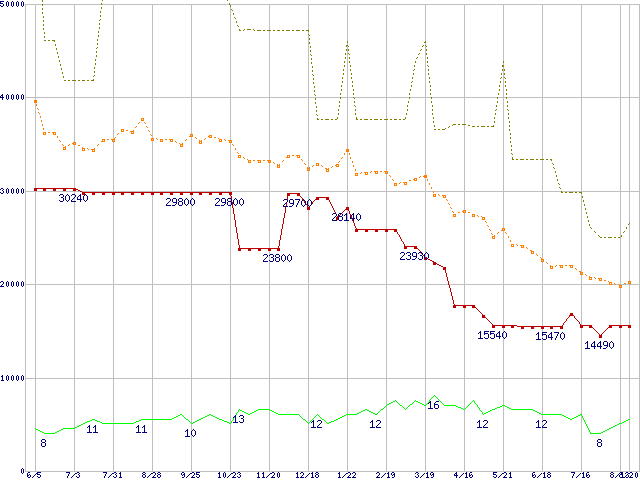 PC2700(DDR333) DDR SDRAM DIMM ECC対応 Registeredタイプの最安値推移