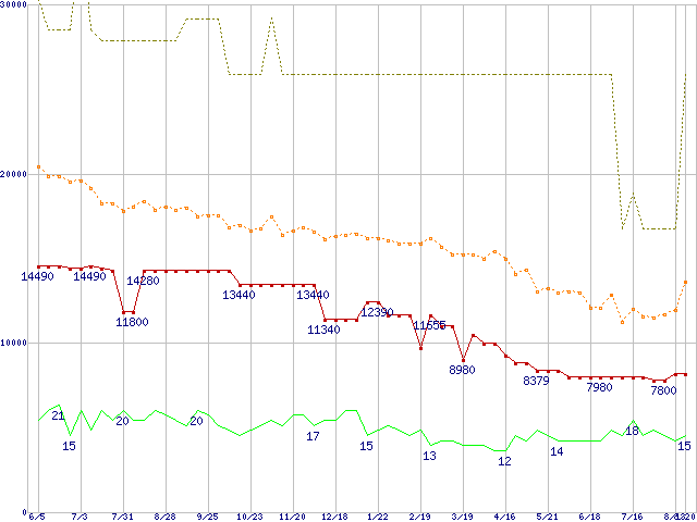 PC3200(DDR400) DDR SDRAM DIMM ECC対応 Registeredタイプの最安値推移