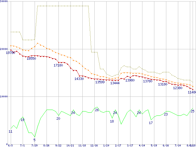 | HDS722525VLSA80 (250GB,8MB)の価格推移 | | | (2004年6月3日~2005年8月18日) |