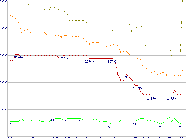 メモリ主要製品の最安値推移