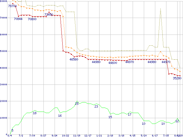 | Pentium M 755 (2GHz)の価格推移 | | | (2004年6月4日~2005年8月19日) |