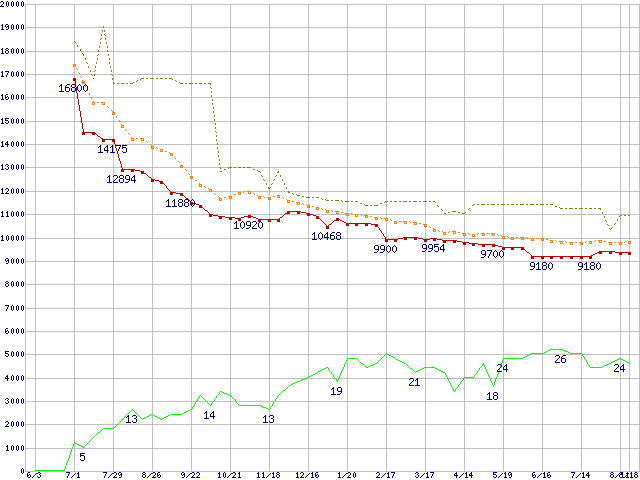 | ST3160827AS (160GB)の価格推移 | | | (2004年6月3日~2005年8月18日) |