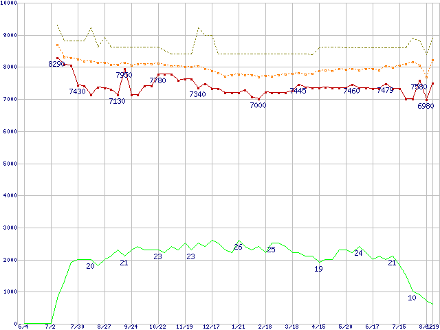 | Celeron D 320 (2.40GHz)の価格推移 | | | (2004年6月4日~2005年8月19日) |