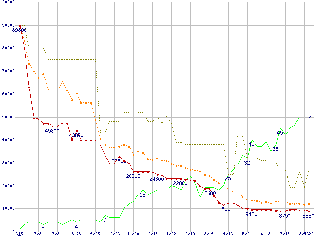 | PC2-4200* 1GBの価格推移 | | | (2004年6月5日~2005年8月20日) |
