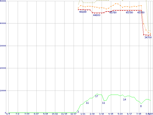 | Pentium M 760 (2GHz)の価格推移 | | | (2004年6月4日~2005年8月19日) |