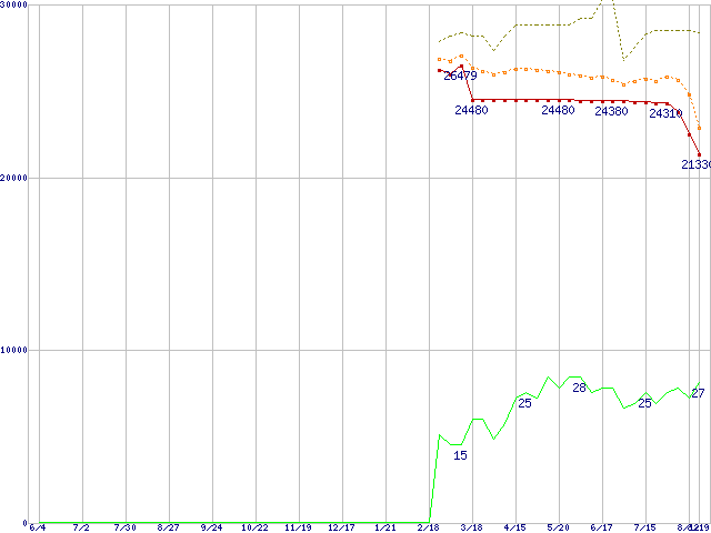 | Pentium 4 630 (3GHz)の価格推移 | | | (2004年6月4日~2005年8月19日) |