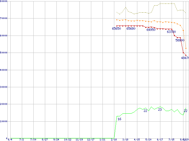 | Pentium 4 660 (3.60GHz)の価格推移 | | | (2004年6月4日~2005年8月19日) |
