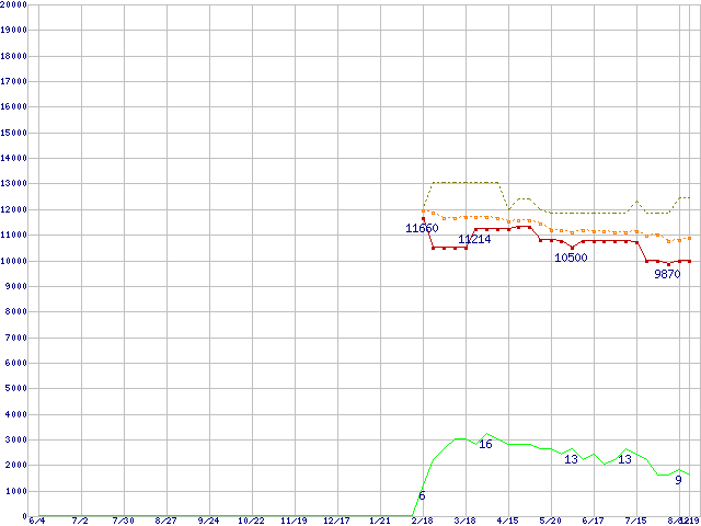 | Sempron 3000+ (1.8GHz,L2 128KB)の価格推移 | | | (2004年6月4日~2005年8月19日) |
