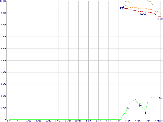 | 6L160M0 (160GB,8MB)の価格推移 | | | (2004年6月3日~2005年8月18日) |