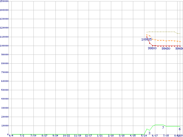 | Opteron 265 (1.8GHz)の価格推移 | | | (2004年6月4日~2005年8月19日) |