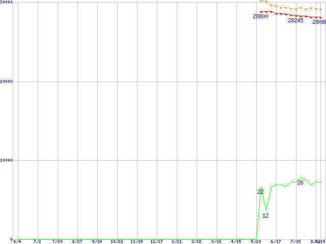 | Pentium D 820 (2.80GHz)の価格推移 | | | (2004年6月4日~2005年8月19日) |