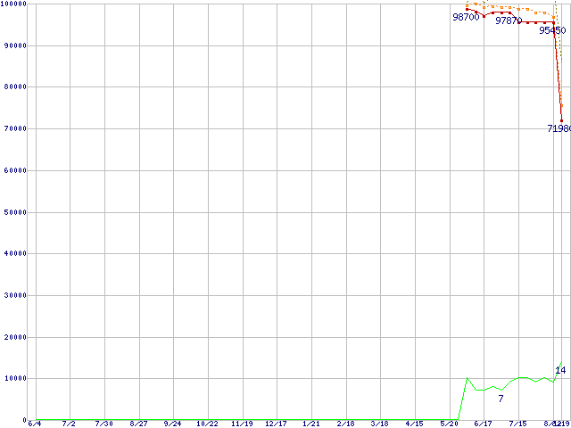 | Pentium 4 670 (3.80GHz)の価格推移 | | | (2004年6月4日~2005年8月19日) |
