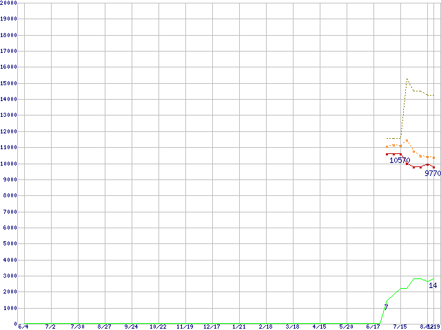 | Celeron D 336 (2.80GHz)の価格推移 | | | (2004年6月4日~2005年8月19日) |